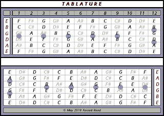 Apabila Anda menekan fretboard kesatu pada senar kesatu maka akan Anda peroleh naik setengah nada dari nada E yaitu F, Apabila menekan fretboard kedua pada senar kesatu maka akan Anda peroleh nada F#, dan seterusnya. karena setiap kali naik satu fret maka nada yang dihasilkan akan naik pula sebesar setengah nada.