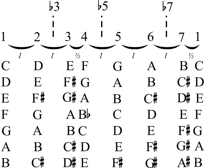Ima7 IImi7 IIImi7 IVma7 V7 VImi7 VIImi7(b5)